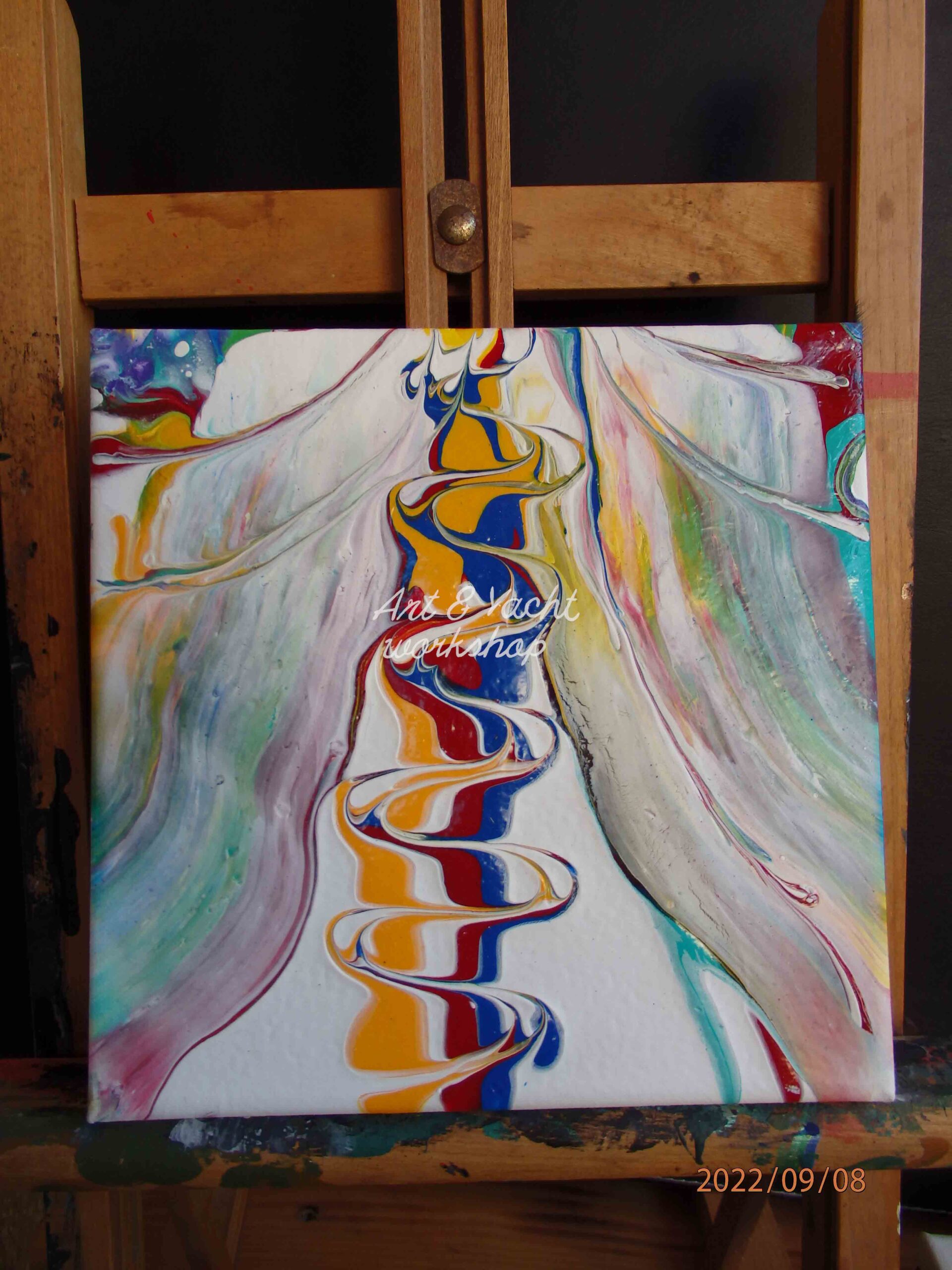 Dies ist ein energetisches Gemälde aus der Regenbogen-Serie. Einzigartig als eines der Original-Kunstwerke der Künstlerin Maritsa Spanogianni.