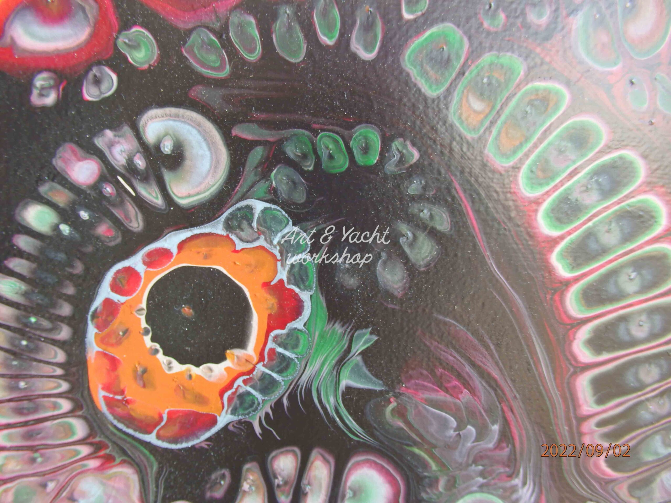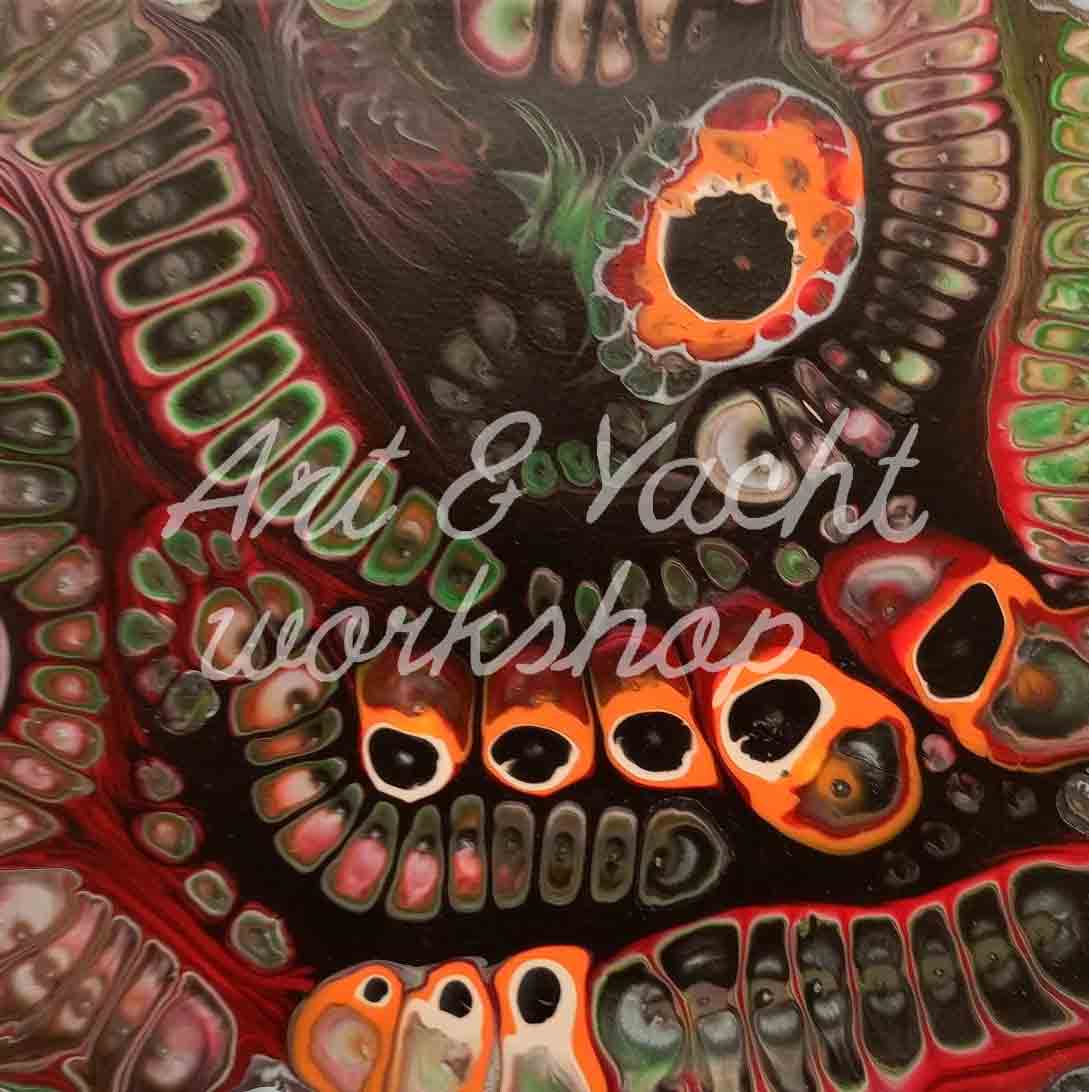 Amsterdam Acrylfarben in modifiziertem, flüssigem Kunstguss, auf gespannter Baumwollleinwand. Veredelt mit zwei Schichten klaren Acryllacks.