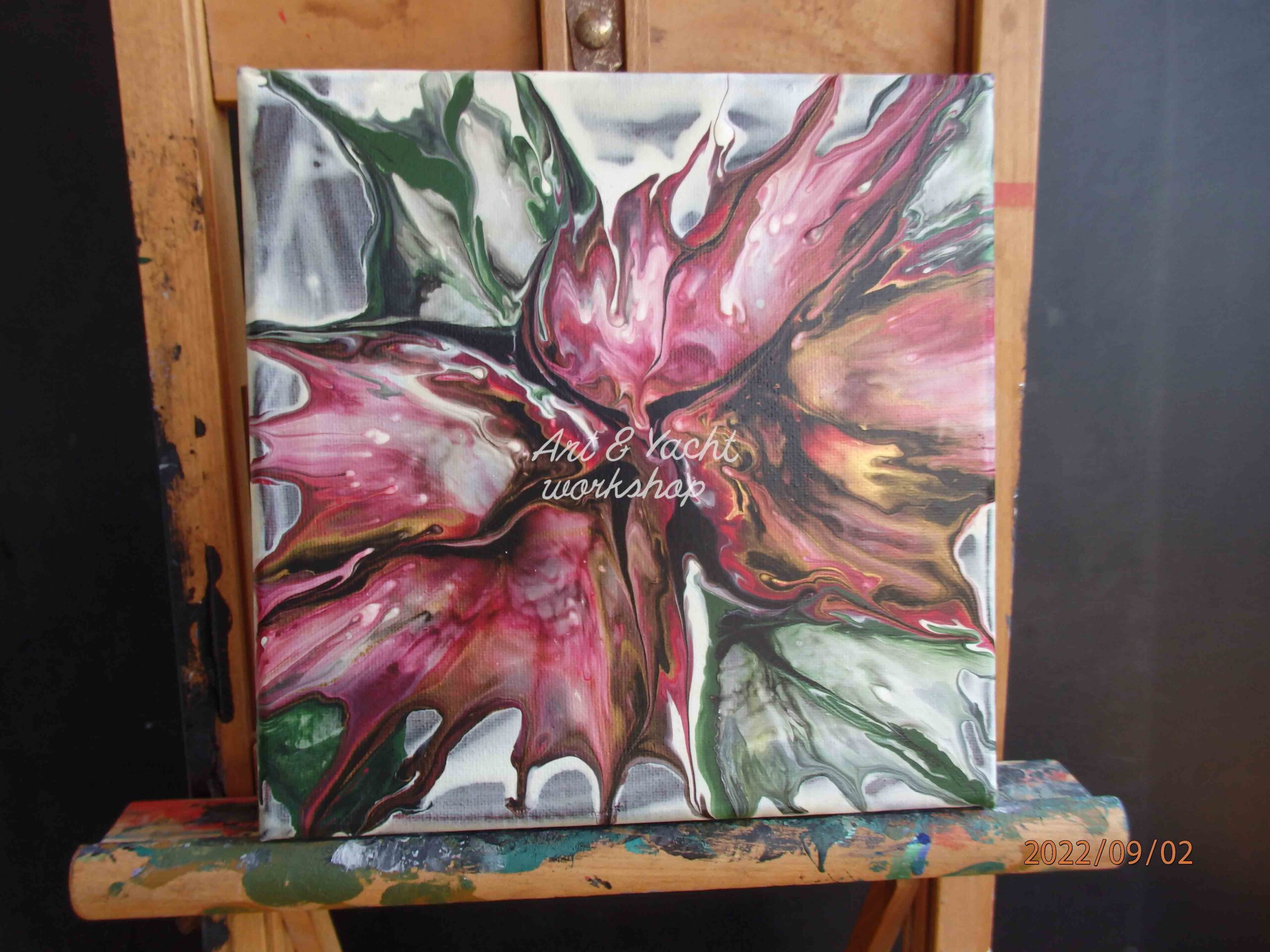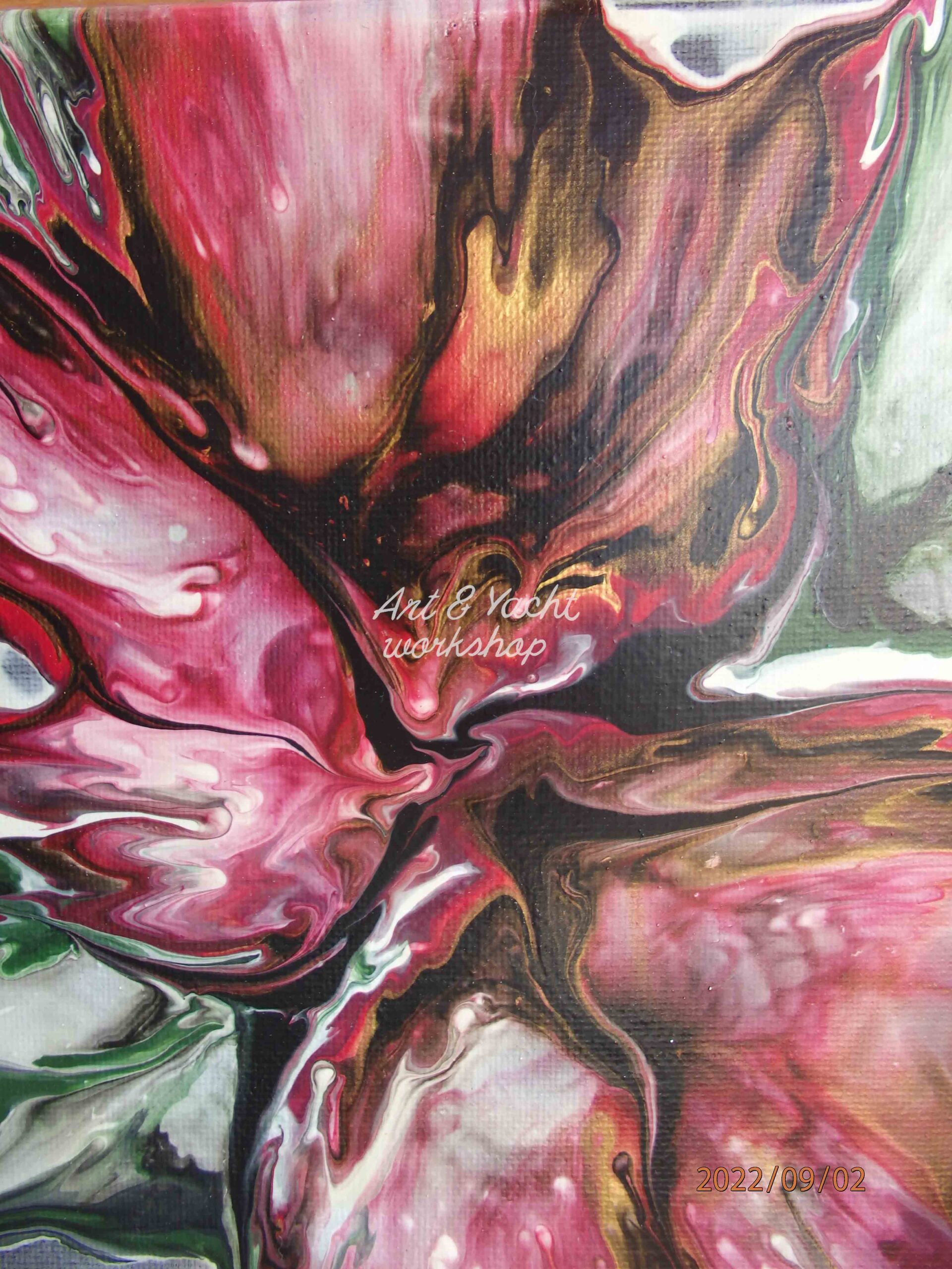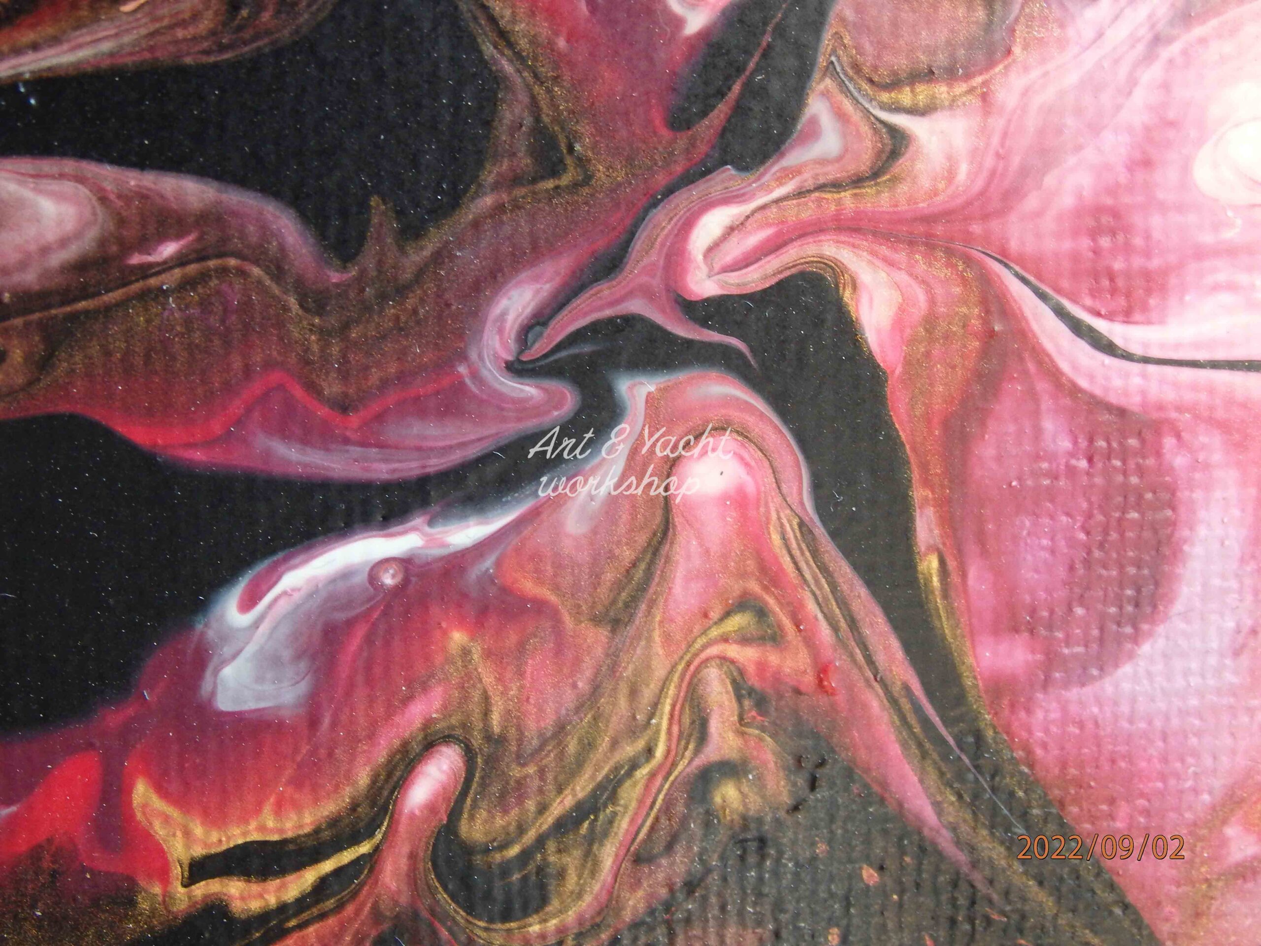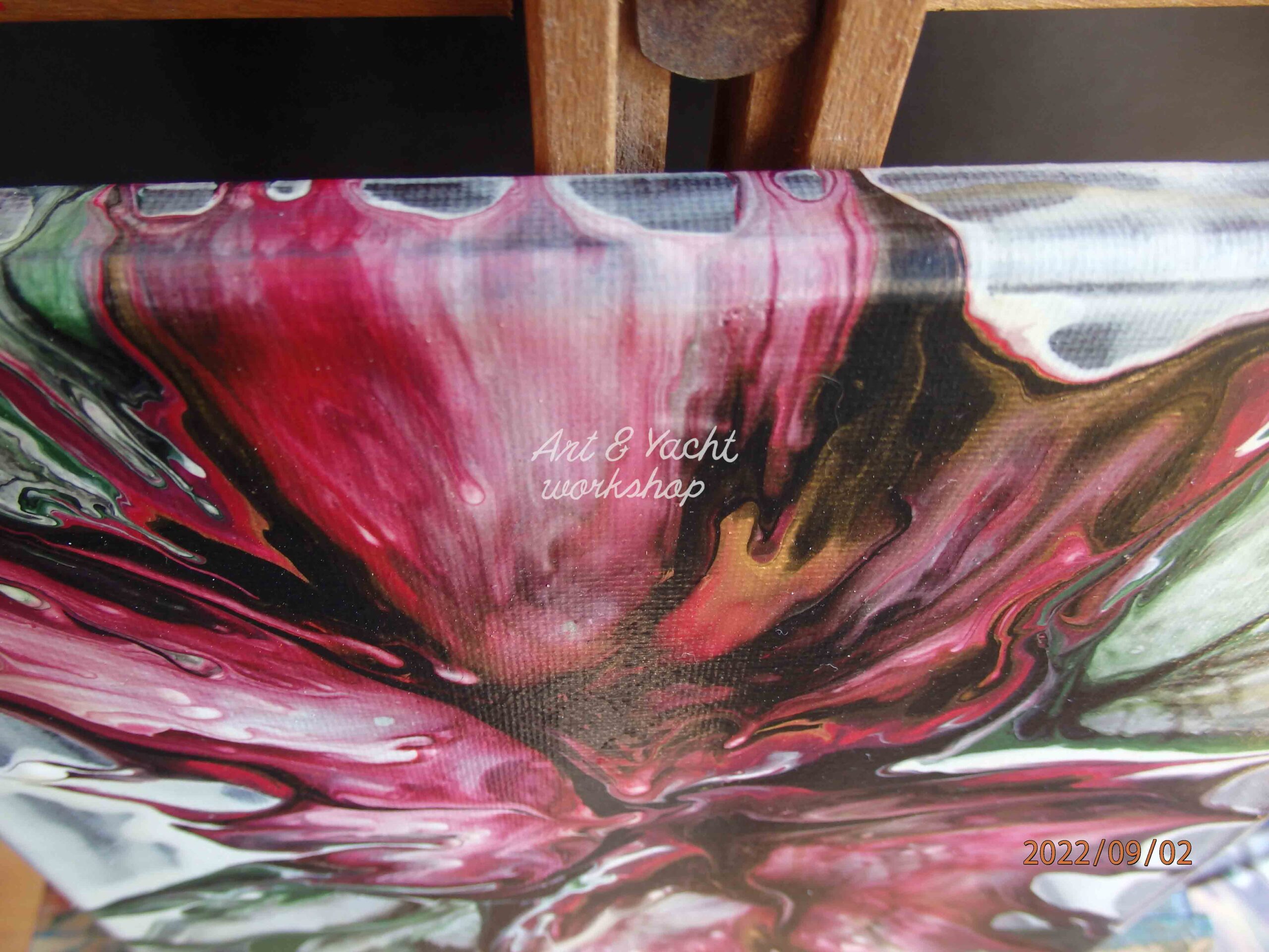 Amsterdam Acrylfarben in modifiziertem, flüssigem Kunstguss, auf gespannter Baumwollleinwand. Veredelt mit zwei Schichten klaren Acryllacks.