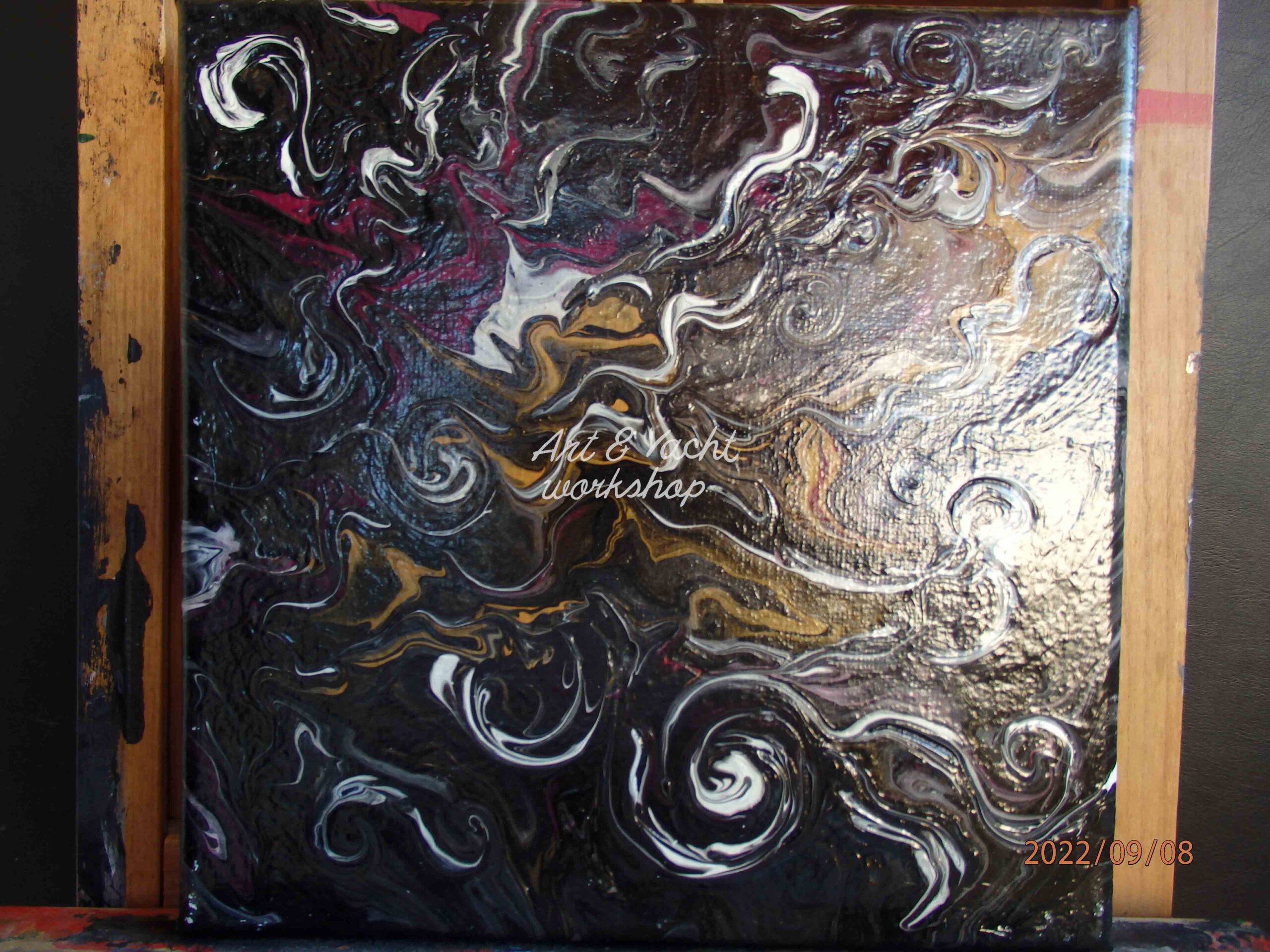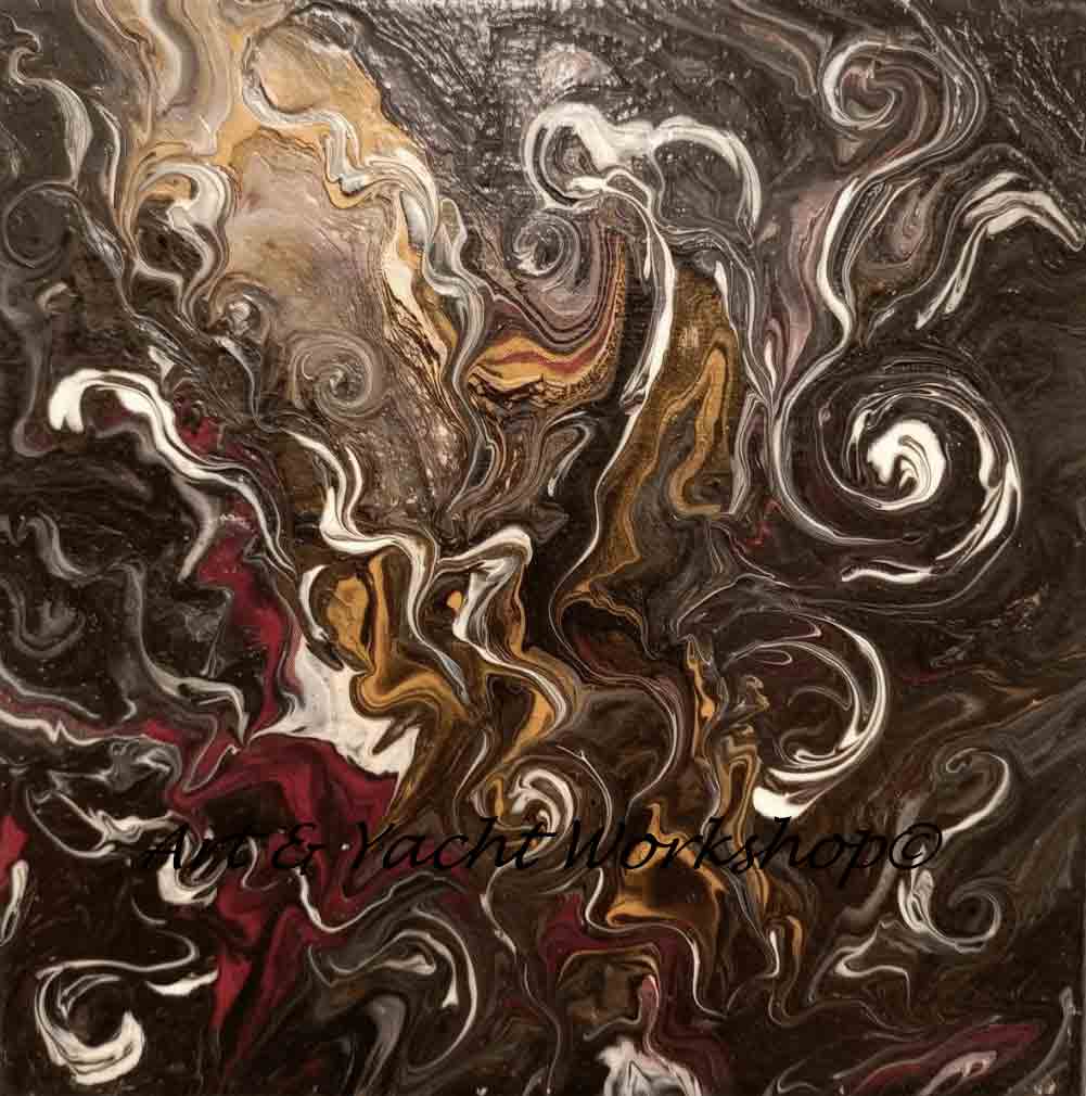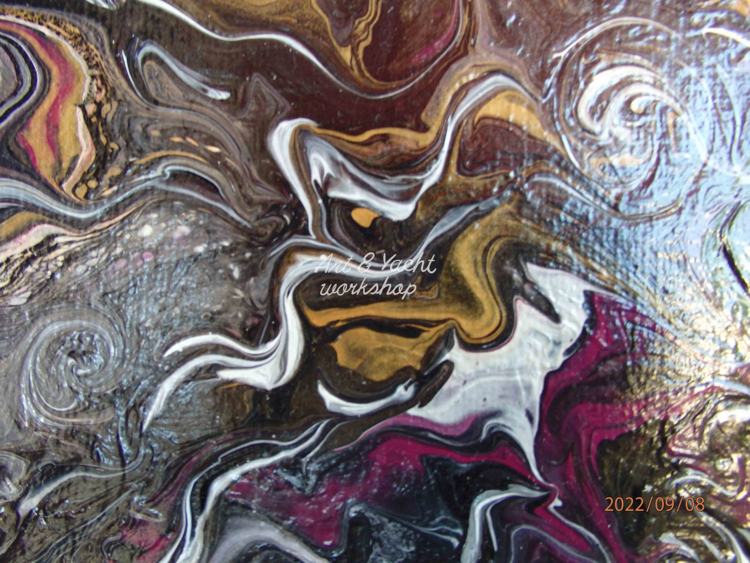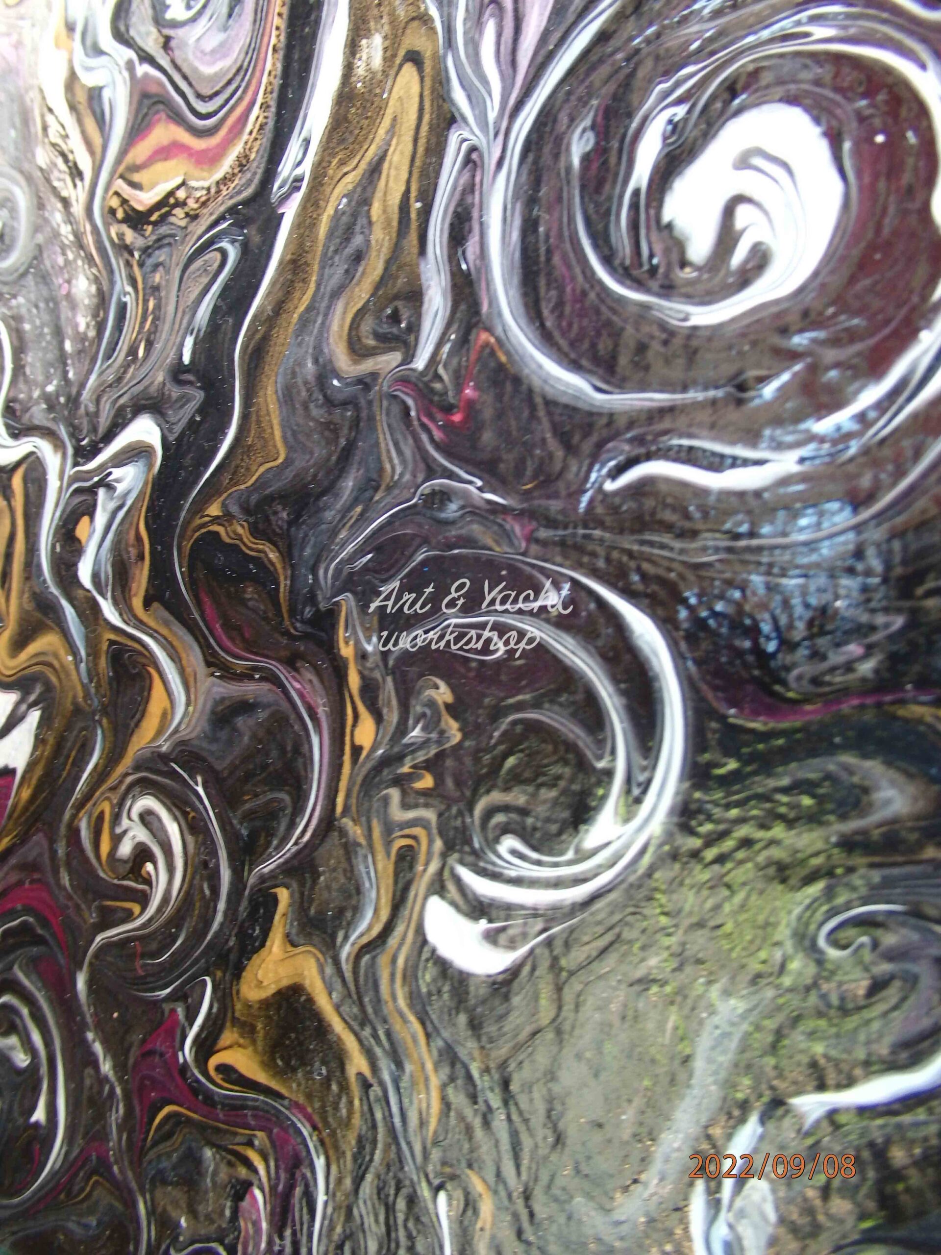 Amsterdam Acrylfarben in modifiziertem, flüssigem Kunstguss, auf gespannter Baumwollleinwand. Veredelt mit zwei Schichten klaren Acryllacks.