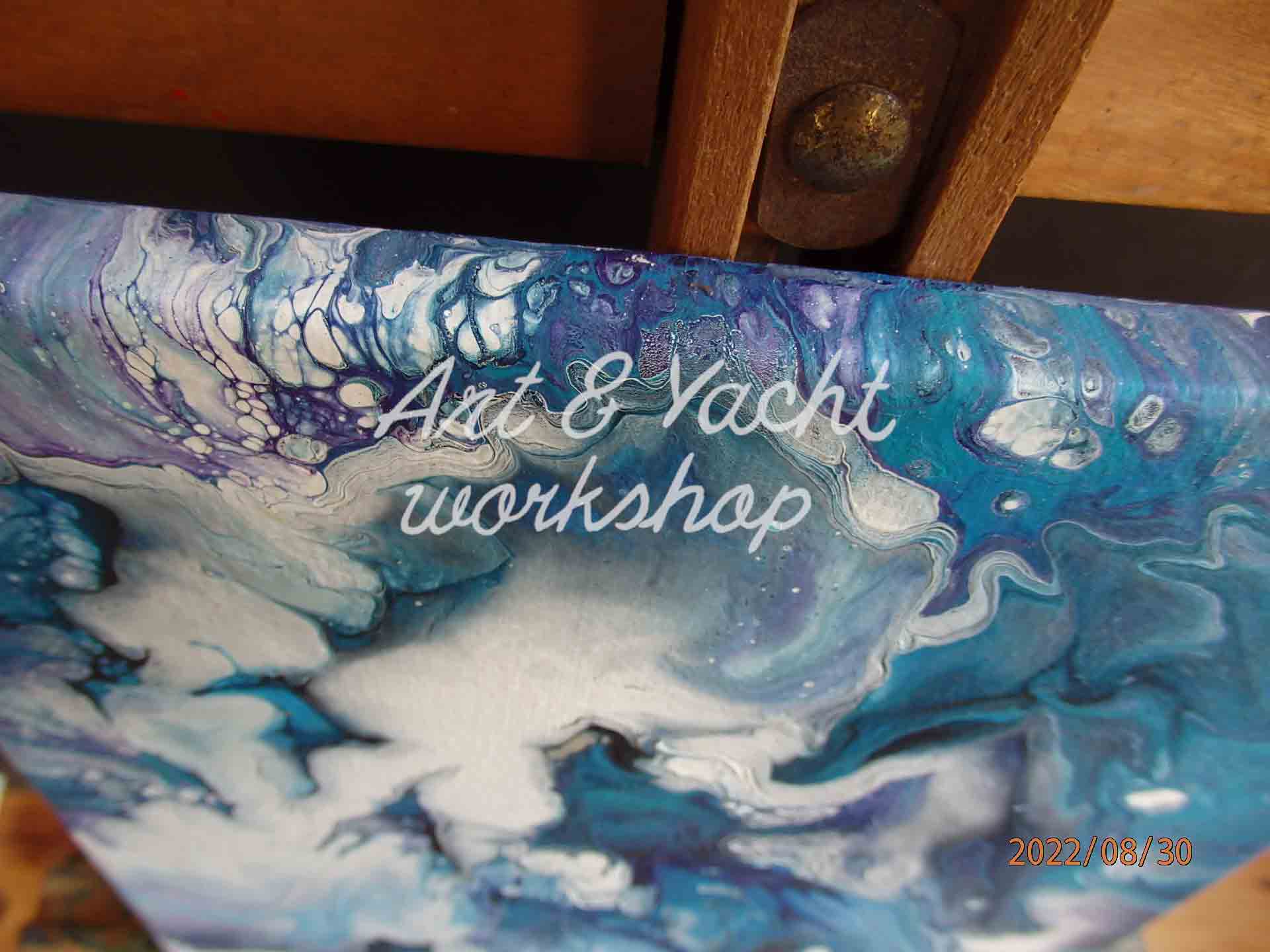 Amsterdam Acrylfarben in modifiziertem, flüssigem Kunstguss, auf gespannter Baumwollleinwand. Veredelt mit zwei Schichten klaren Acryllacks.