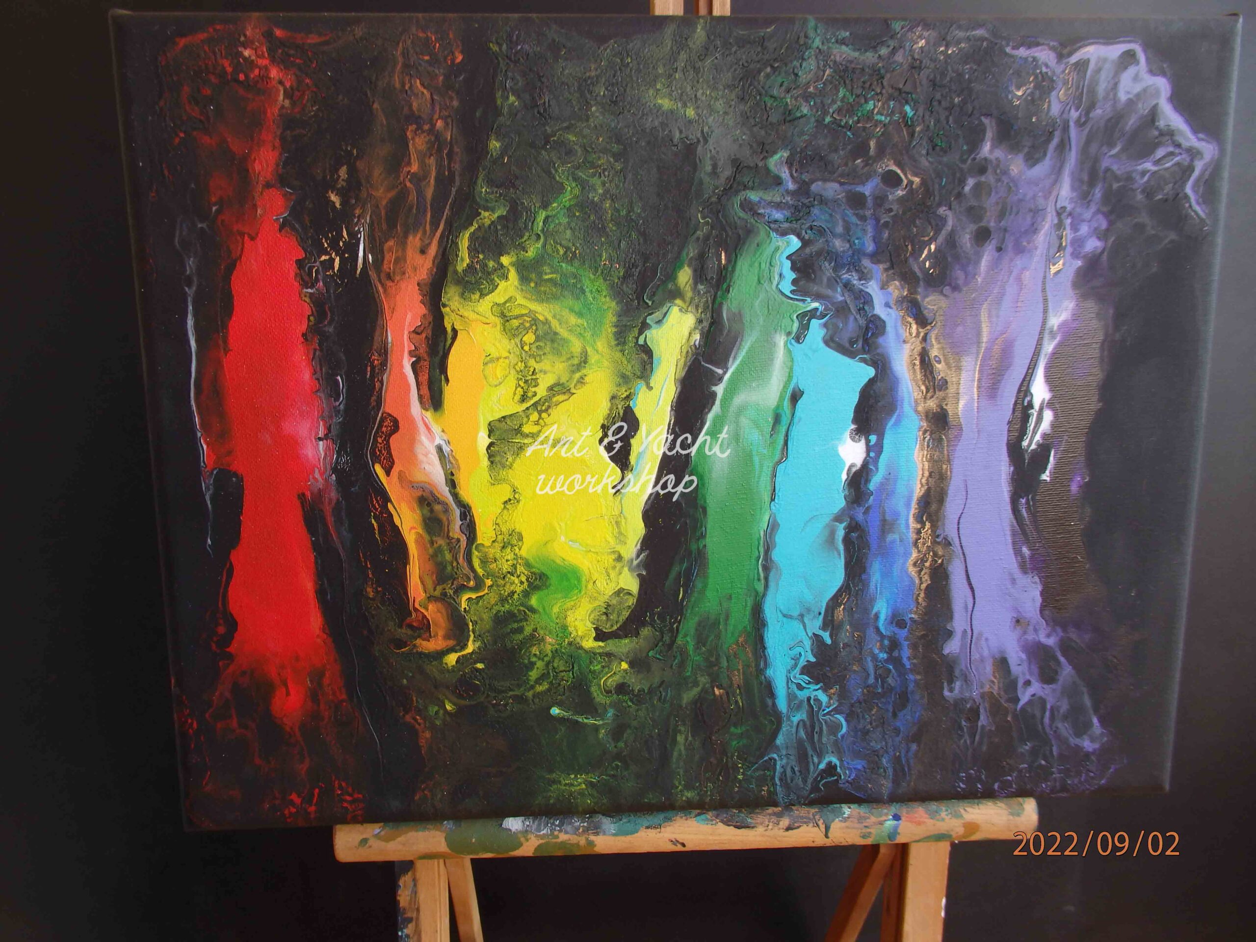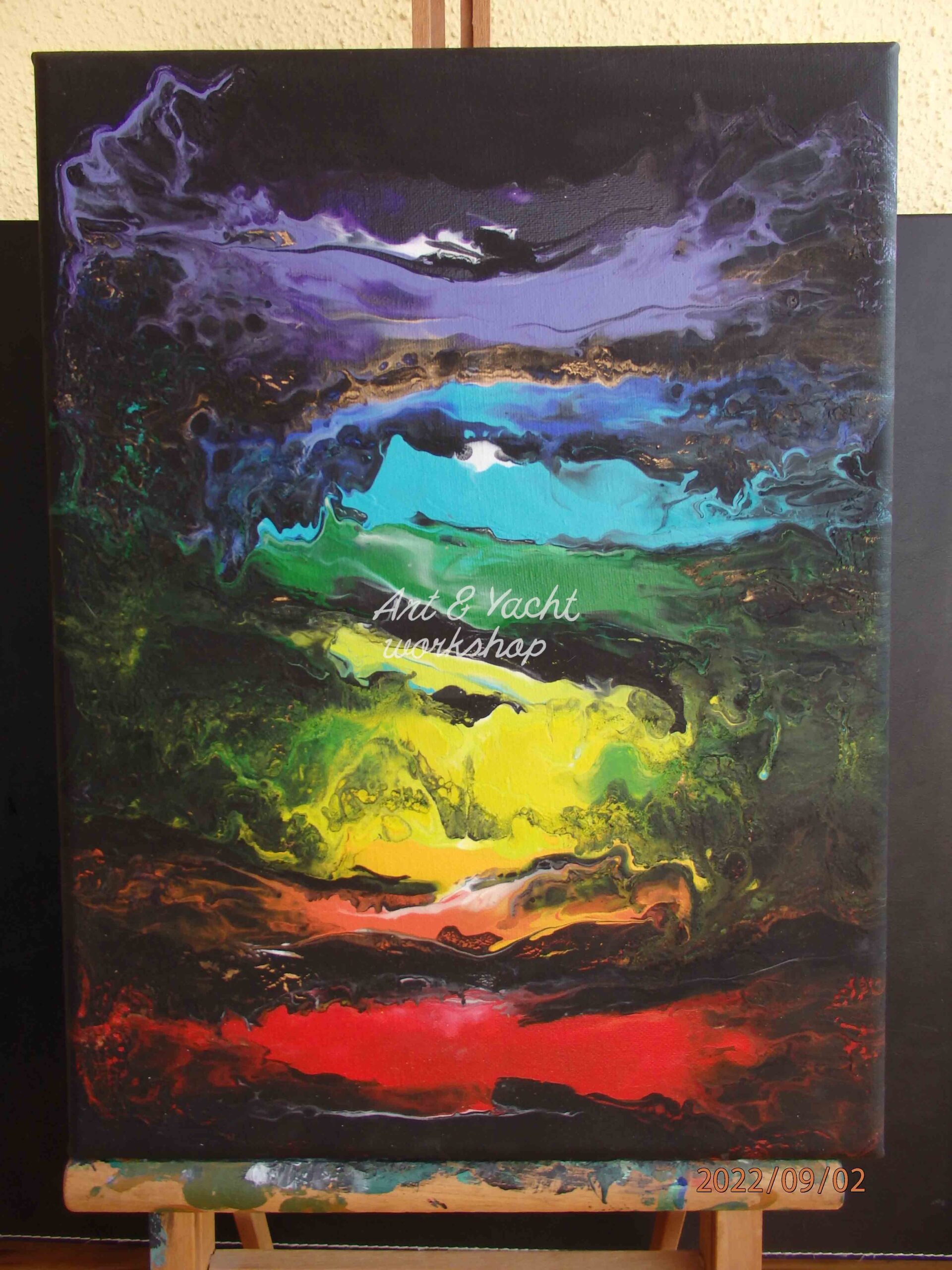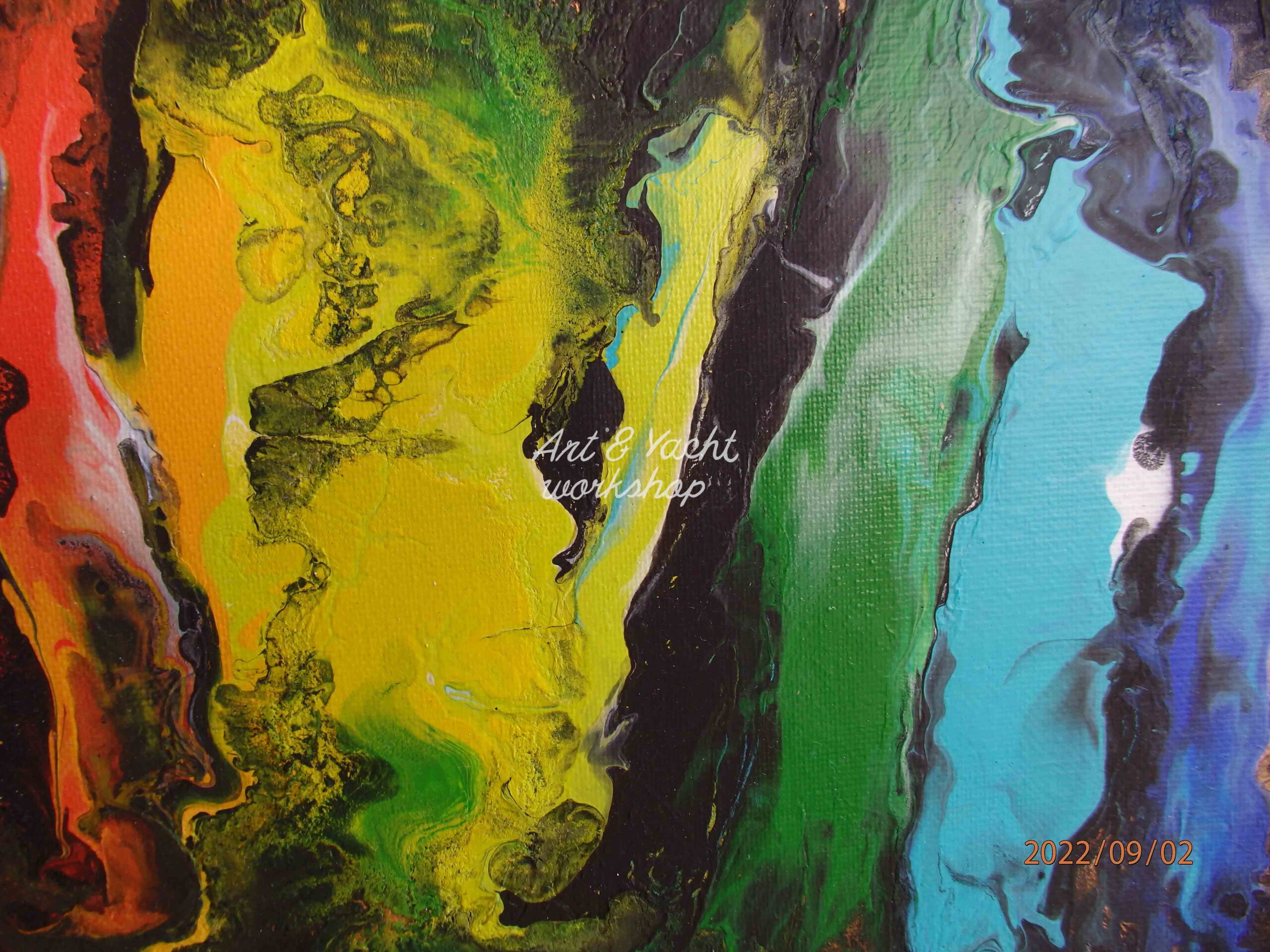 Amsterdam Acrylfarben mit Textur in flüssigem Kunstguss, auf gespannter Deep Edge Baumwollleinwand. Veredelt mit zwei Schichten klaren Acryllacks.