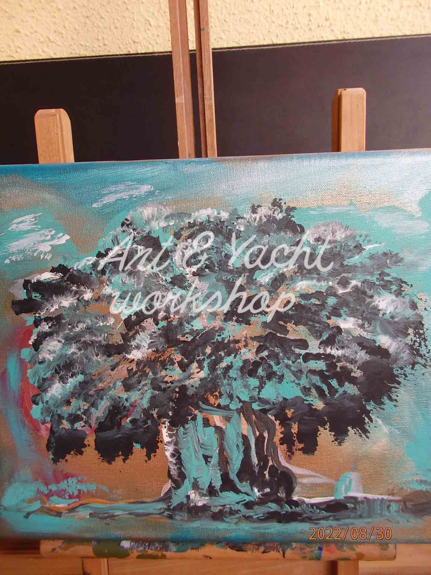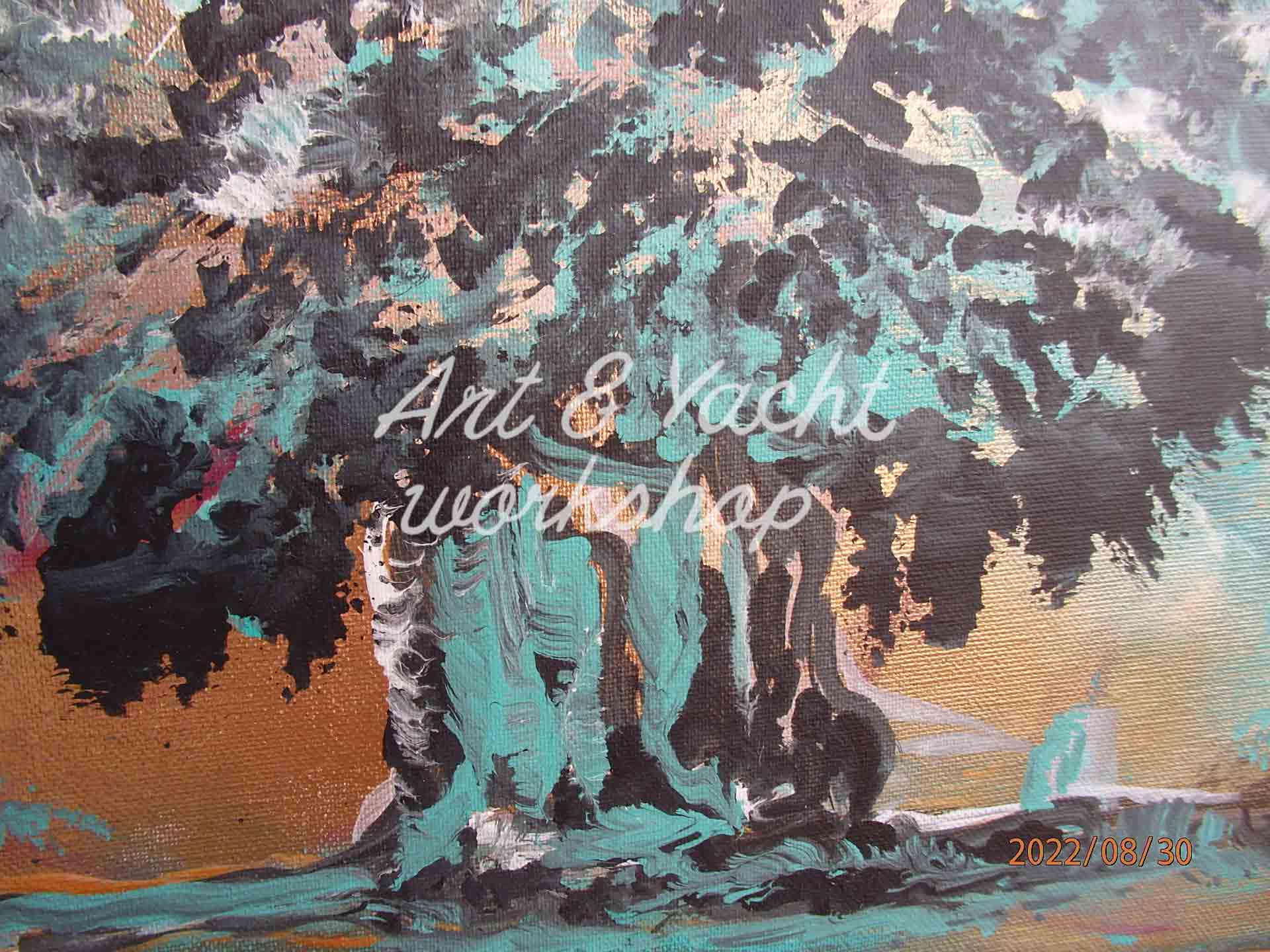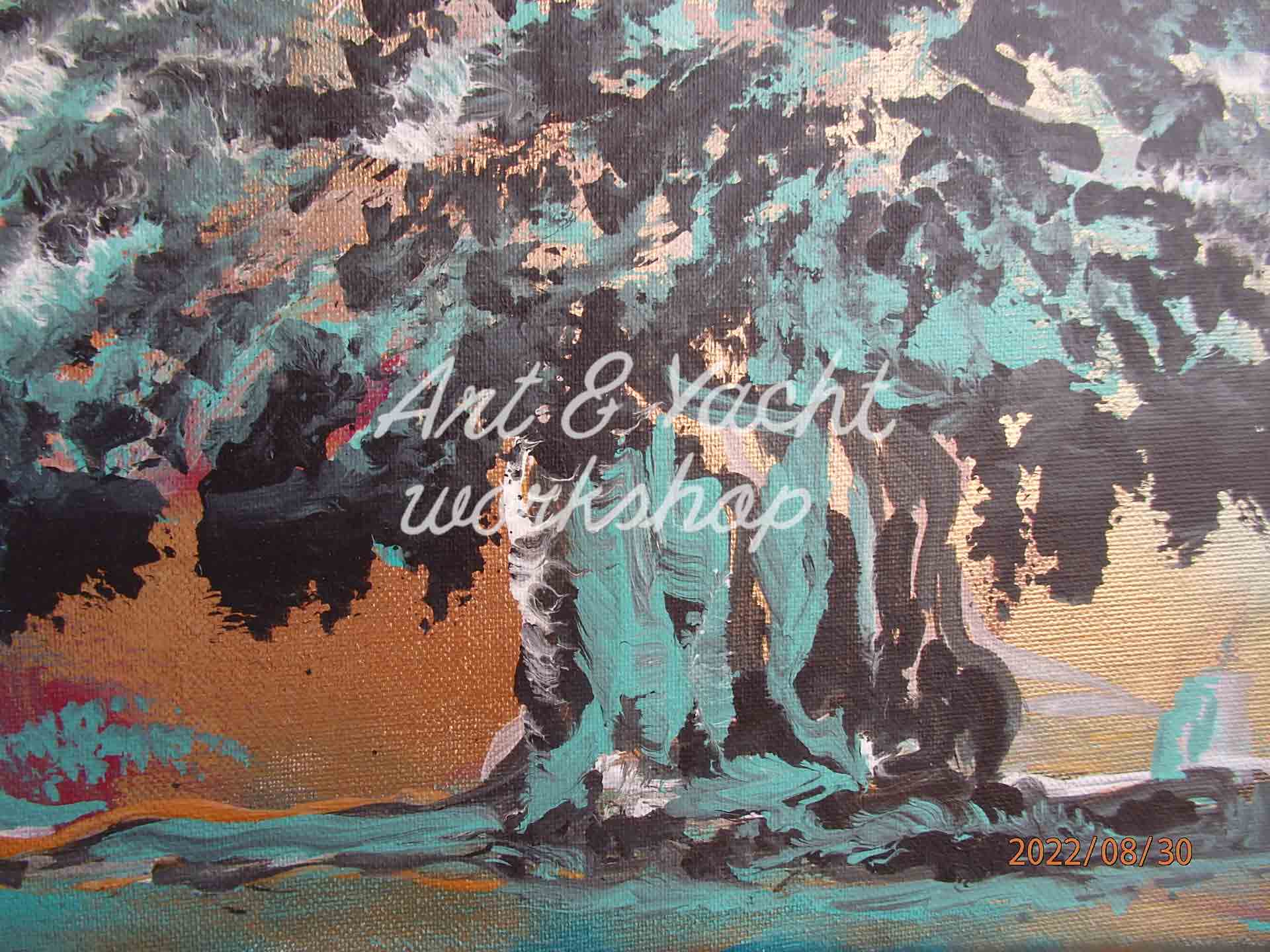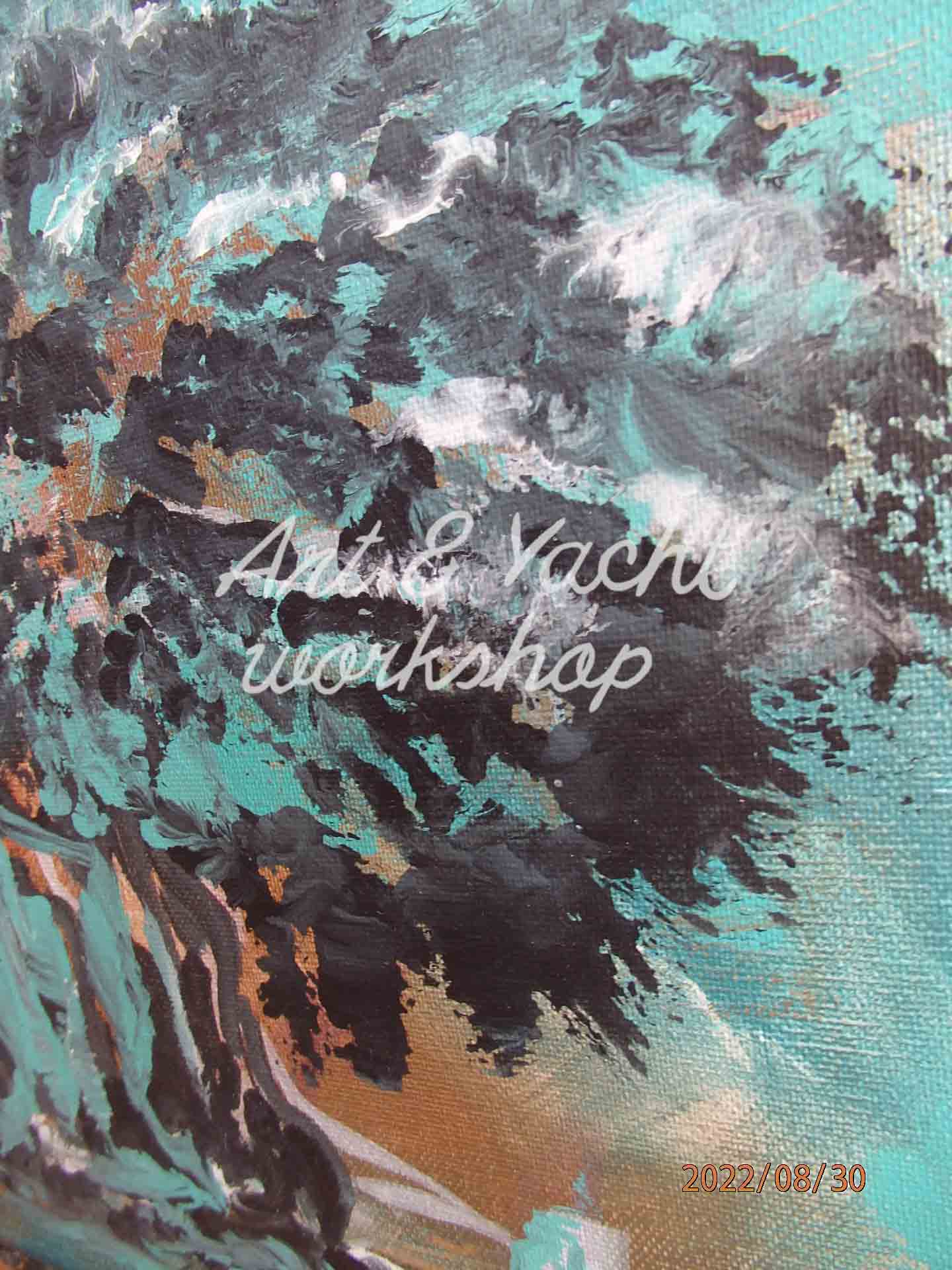 Amsterdam Acrylfarben in Türkis und Gold, auf gespannter Deep Edge Baumwollleinwand. Veredelt mit zwei Schichten klaren Acryllacks.