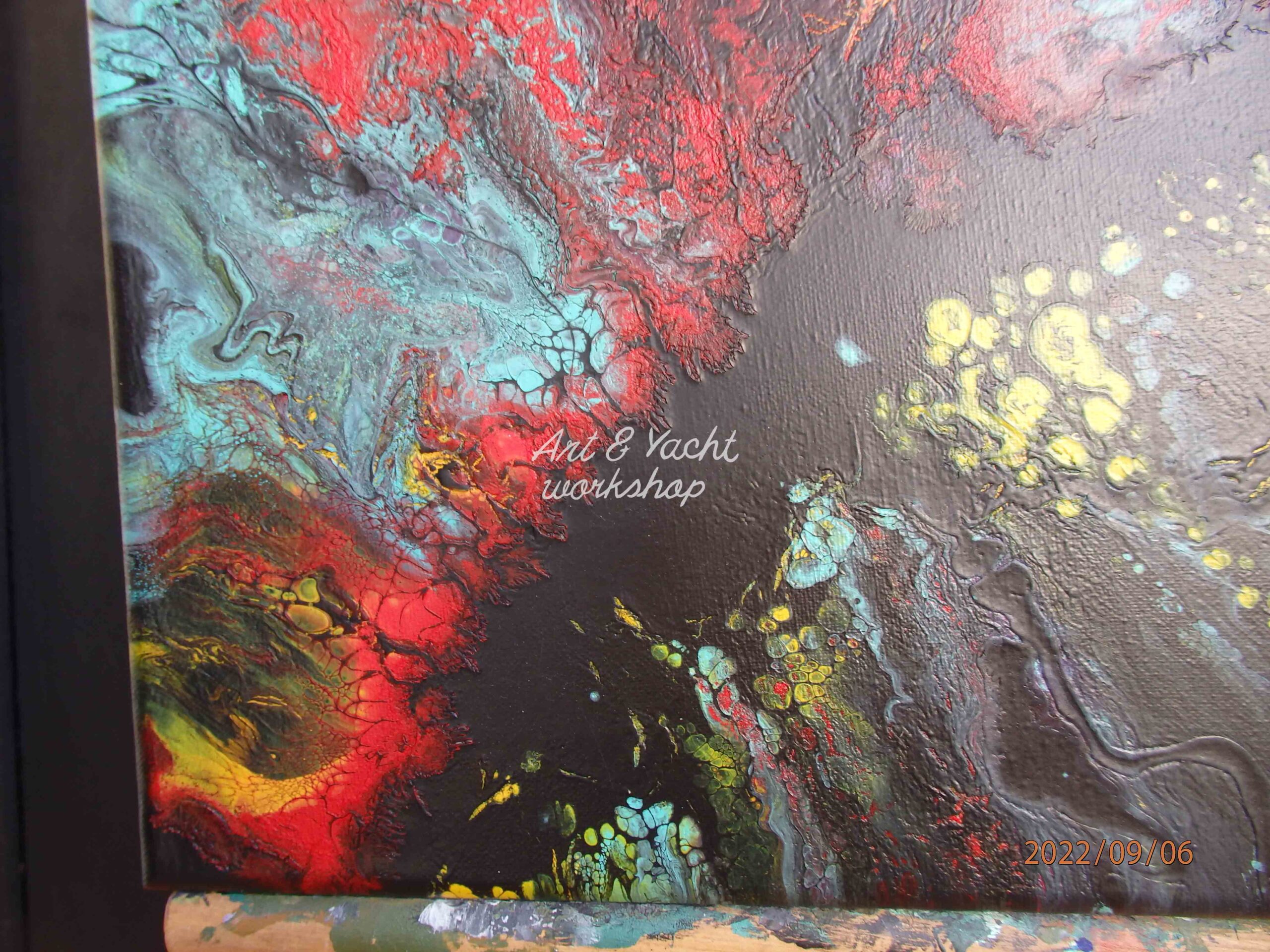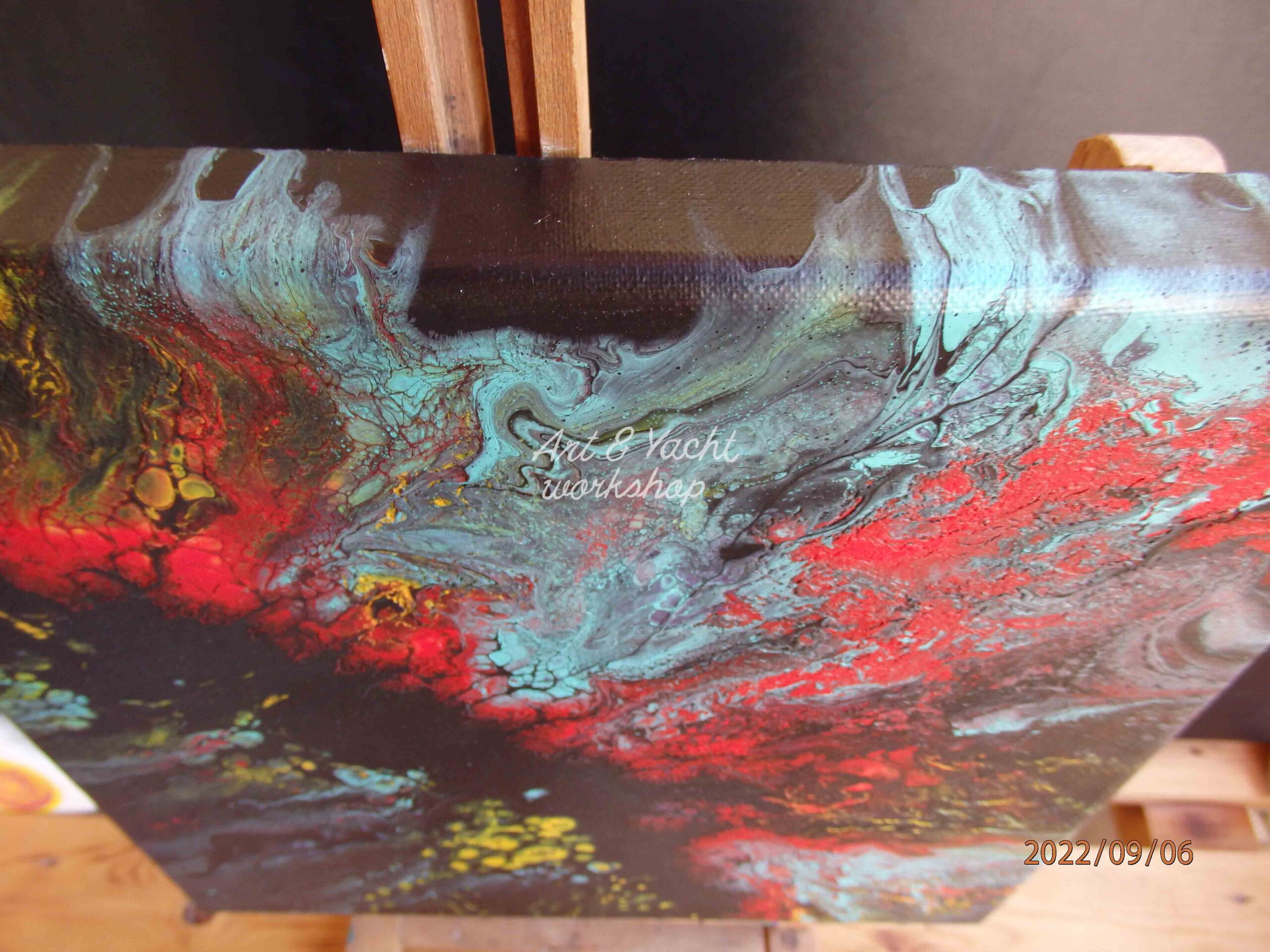 Amsterdam Acrylfarben mit leichter Textur in flüssigem Kunstguss, auf gespannter Deep Edge Baumwollleinwand. Veredelt mit zwei Schichten klaren Acryllacks.